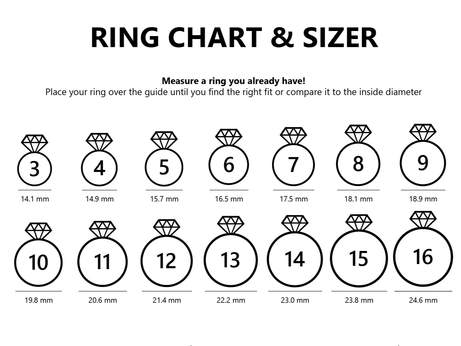 4- Match your measurement to the ring size chart.